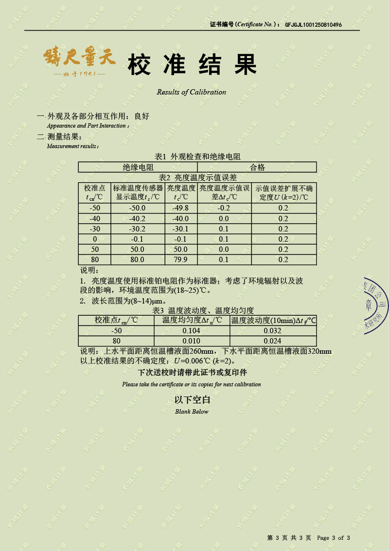 低溫浴式黑體輻射源(-55-80℃)校準(zhǔn)證書(shū) 2025-9-3 本文被閱讀 3226 次