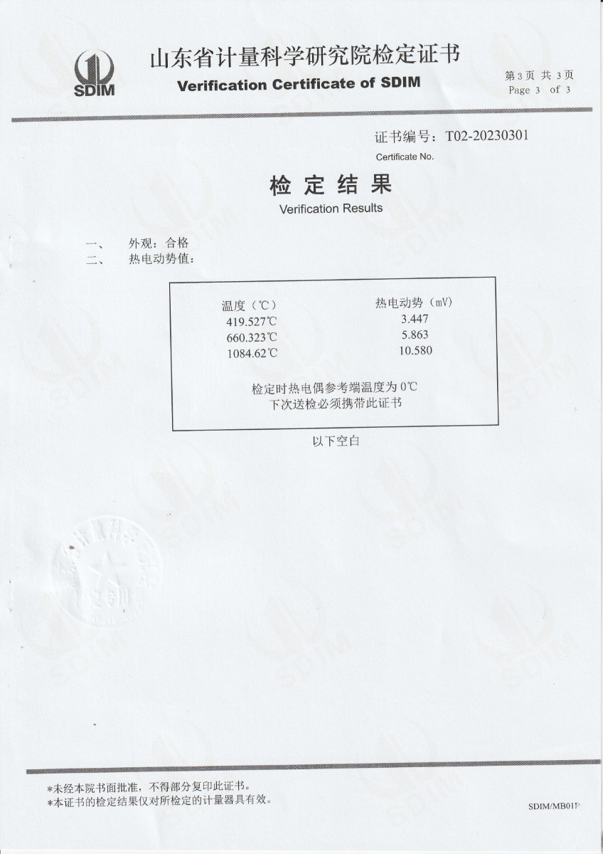 | 上一條:標(biāo)準(zhǔn)鉑銠10-鉑熱電偶S23-7108檢定證書 | 下一條:低溫浴式面源黑體爐-校準(zhǔn)證書 |