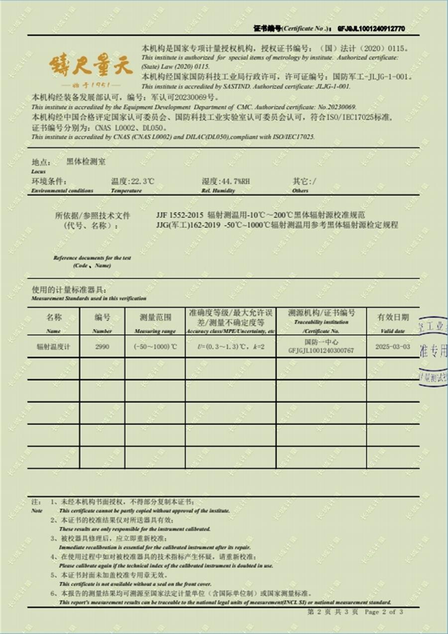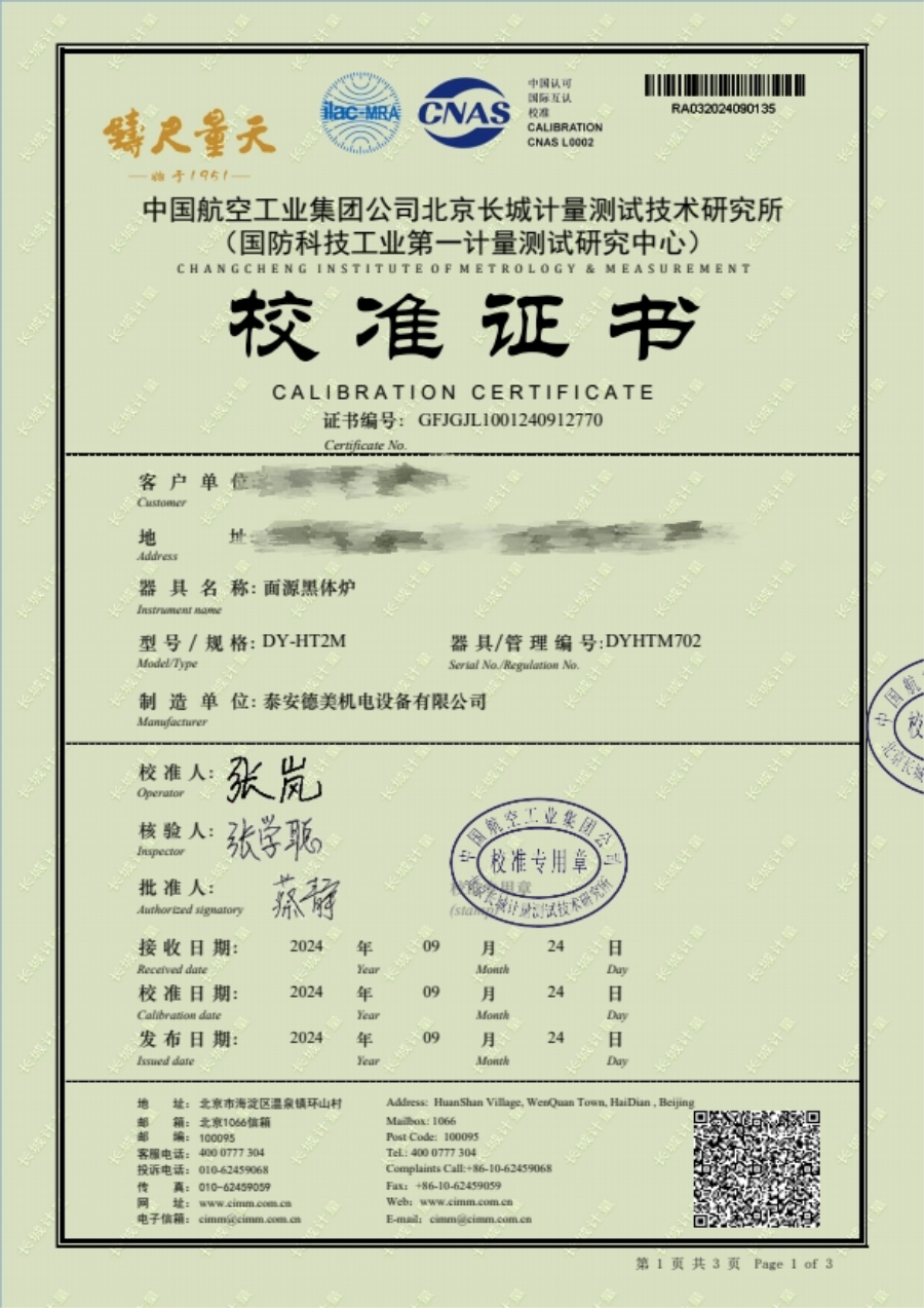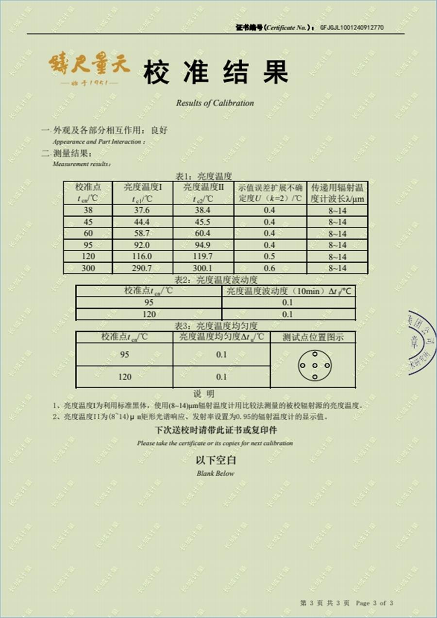 面源黑體爐校準(zhǔn)證書 2024-11-27 本文被閱讀 8562 次