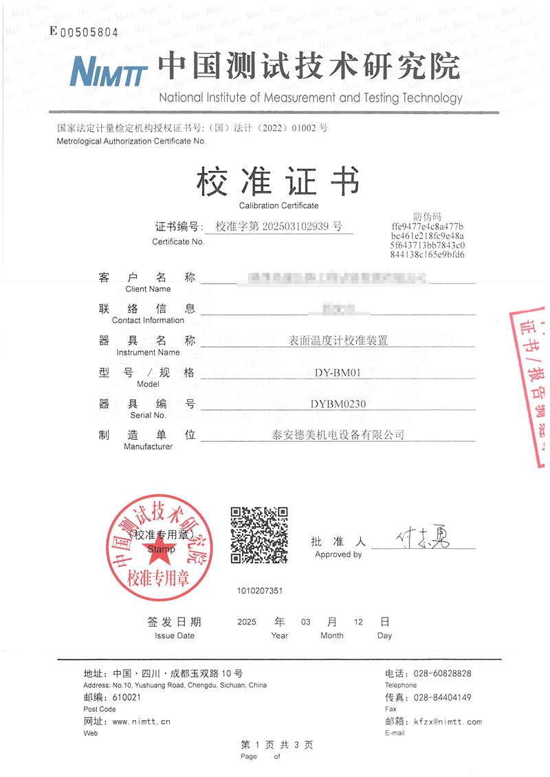 | 上一條:DY-BM02型表面溫度計校驗爐 | 下一條:高精度數(shù)字溫度計-校準證書 |
