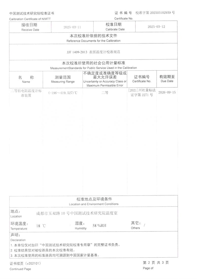 執(zhí)行標準 | JJF 1409-2013 表面溫度計校準規(guī)范 |