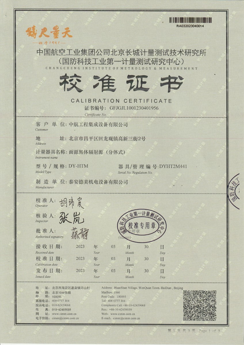 | 上一條:中航工程集成設(shè)備有限公司 黑體輻射源 校準(zhǔn)證書 (2) | 下一條:熱工自動檢定系統(tǒng)-校準(zhǔn)證書 |