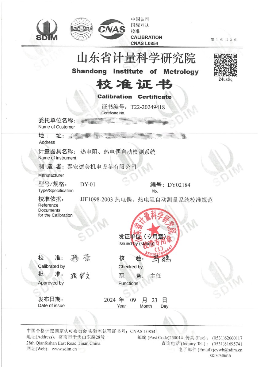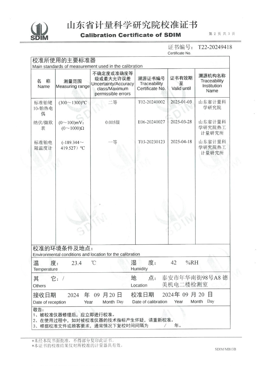 | 上一條:貴金屬熱電偶檢定爐(800~1600℃)校準(zhǔn)證書 | 下一條:高精度數(shù)字溫度計-校準(zhǔn)證書 |
