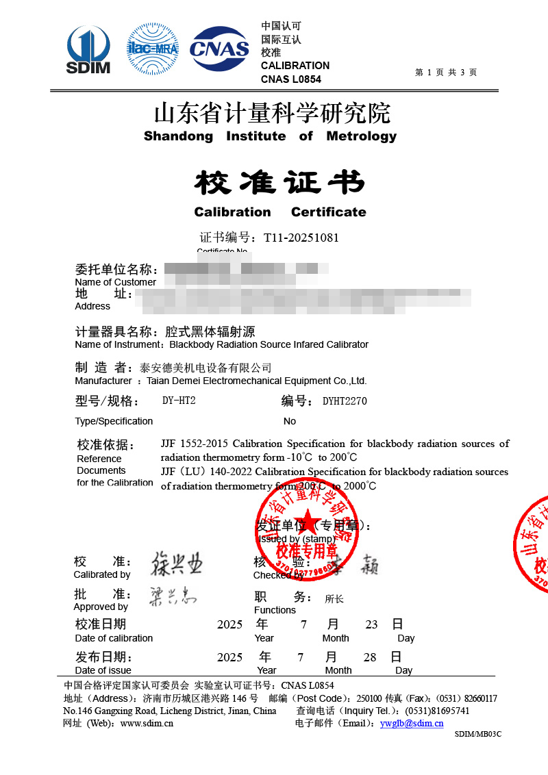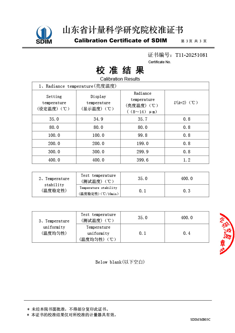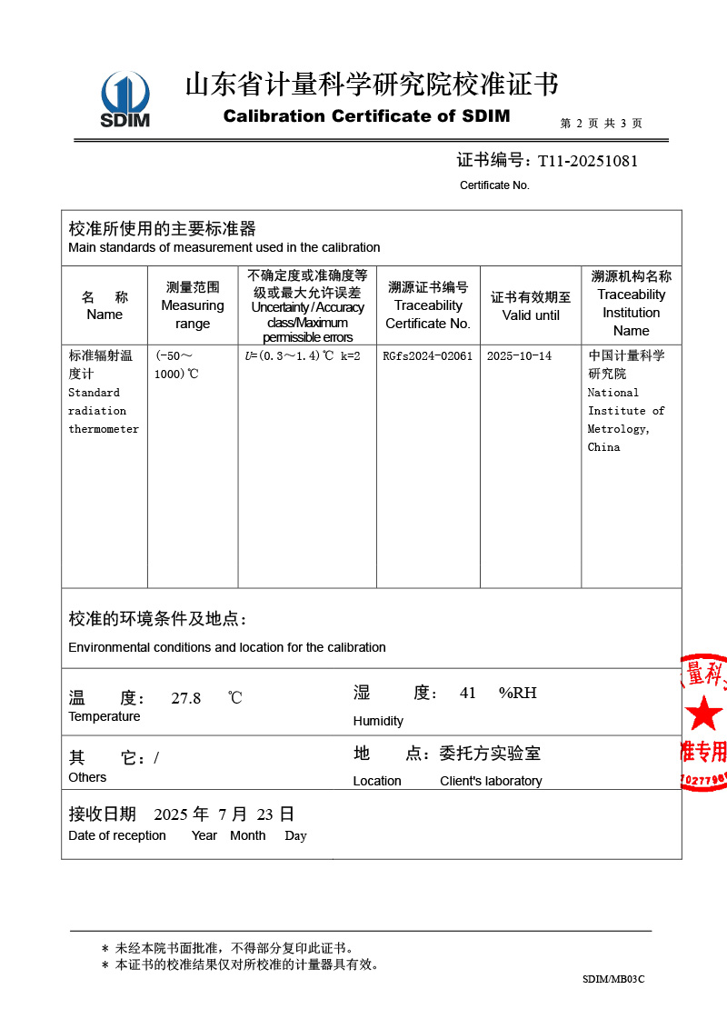 腔式黑體輻射源(室溫+5-400℃)校準(zhǔn)證書 2025-7-29 本文被閱讀 3897 次