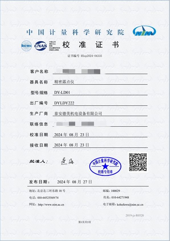 露點(diǎn)儀校準(zhǔn)證書 2024-9-3 本文被閱讀 9051 次