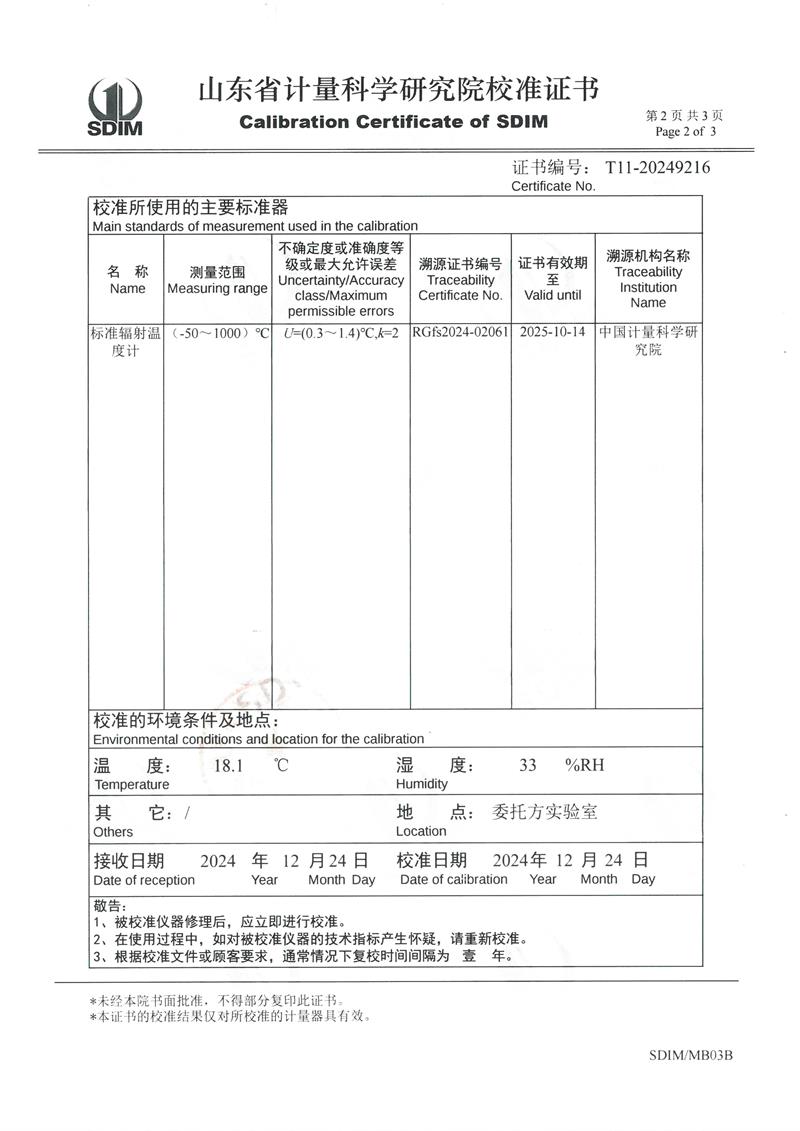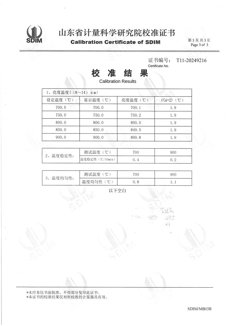 高溫黑體爐(300℃~1200℃)校準(zhǔn)證書 2025-1-25 本文被閱讀 8421 次