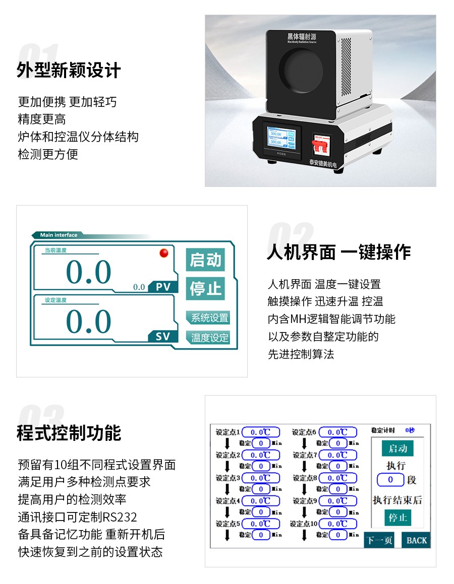 標準黑體作為標準輻射源,主要用于校準輻射溫度計、紅外溫度計和輻射溫度傳感探測器。我公司目前具有先進的黑體技術(shù),產(chǎn)品種類全、溫度范圍寬的黑體系列產(chǎn)品。產(chǎn)品體積小、重量輕、便于攜帶,不僅適合各級計量機構(gòu)實驗室校準輻射溫度計使用,同時可以用于現(xiàn)場校準。面源黑體輻射源是紅外輻射工作標準,廣泛應(yīng)用在紅外探測器的研制過程中的工藝測試和鑒定試驗的技術(shù)指標測試中。同時,面源黑體輻射源作為紅外成像棱準裝置的核心設(shè)備,配合紅外準直光學(xué)系統(tǒng)和紅外靶標,完成紅外成像系統(tǒng)等關(guān)鍵技術(shù)指標測試和性能評估??梢詽M足我國新研制的紅外成像制導(dǎo)武器中紅外成像器的測試需求,可以滿足廣泛應(yīng)用于醫(yī)療、建筑、安全監(jiān)控、環(huán)境檢測等行業(yè)紅外熱像儀的測試需求。