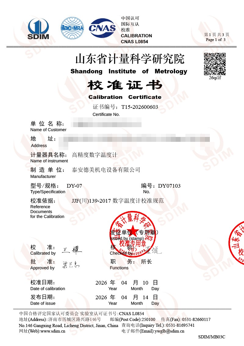 高精度數(shù)字溫度計(jì)-校準(zhǔn)證書(shū) 2026-4-14 本文被閱讀 176 次