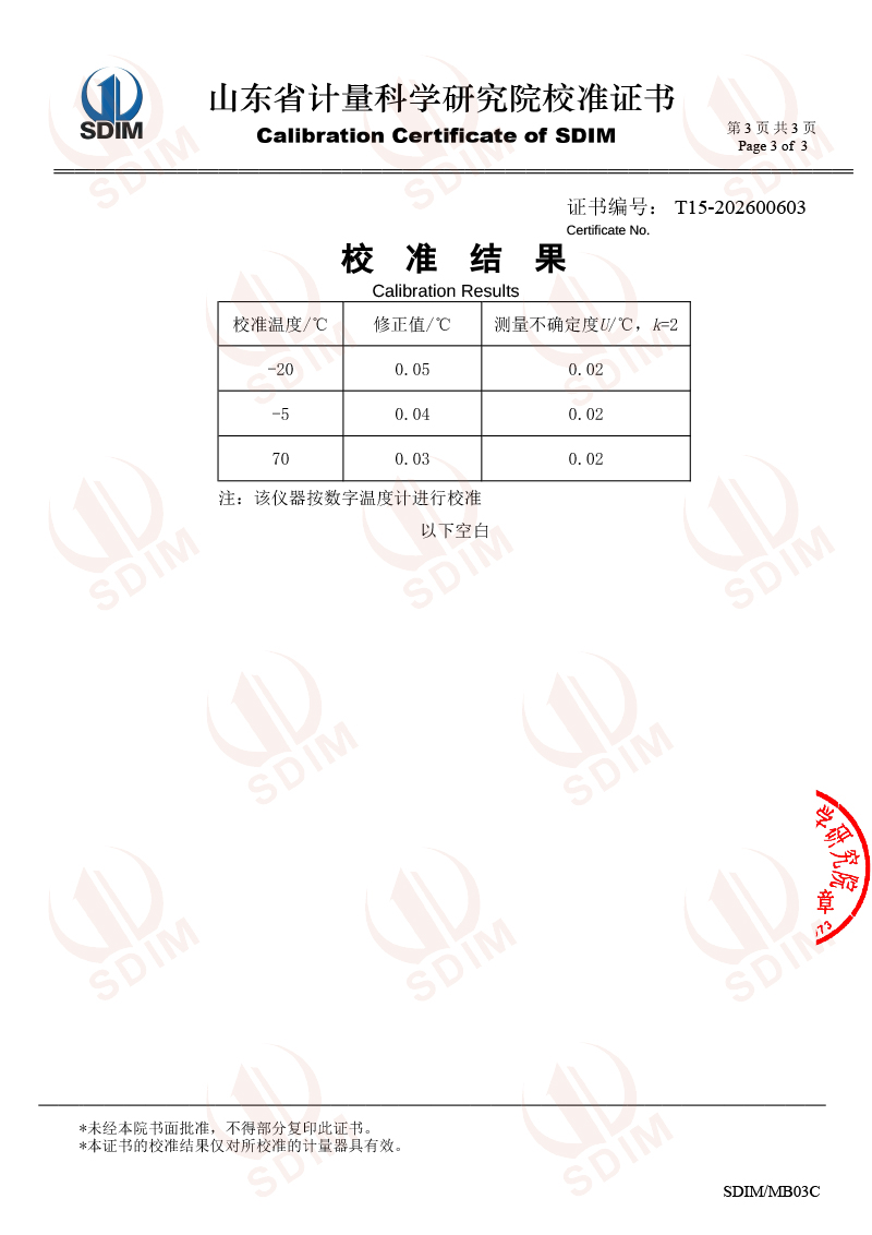 高精度數(shù)字溫度計(jì)-校準(zhǔn)證書(shū)