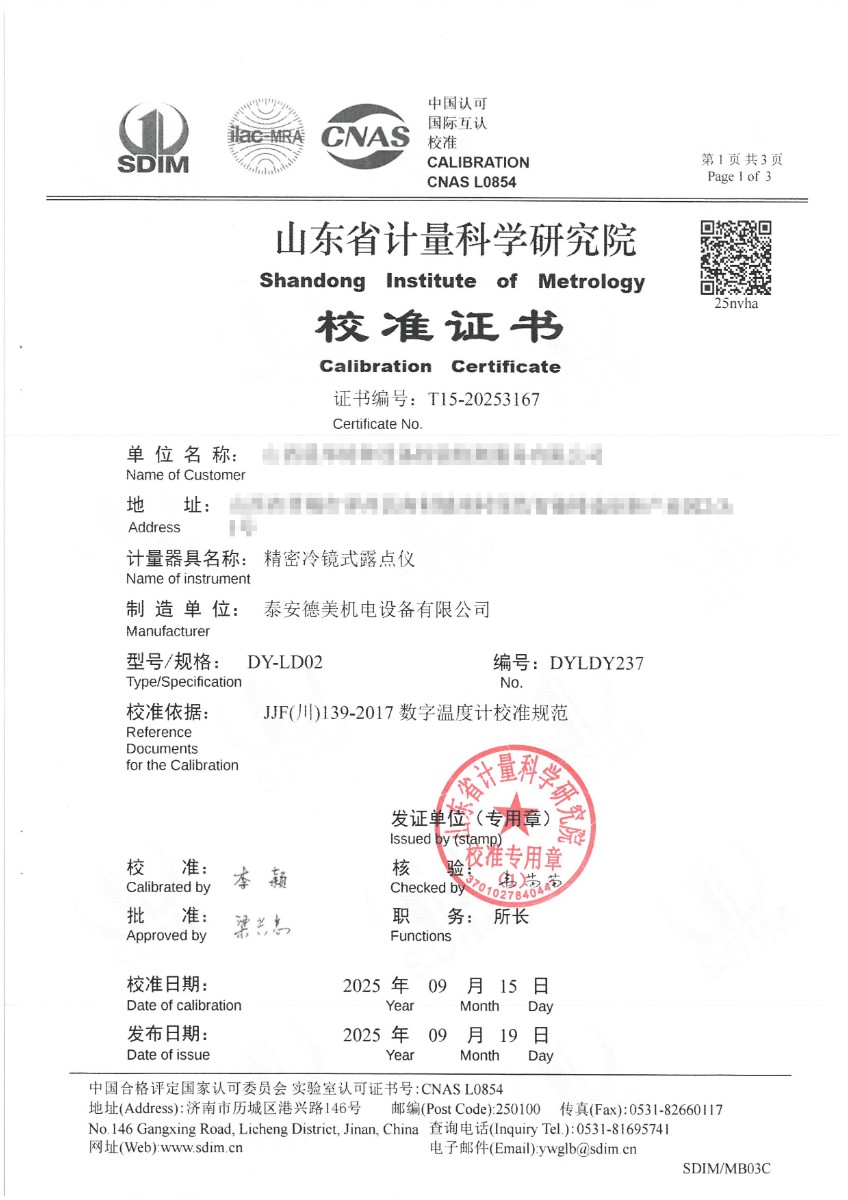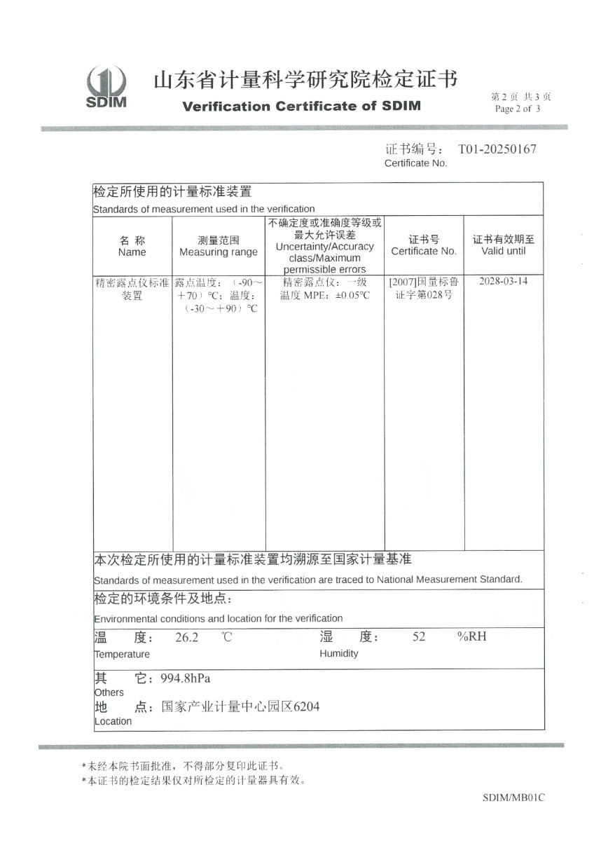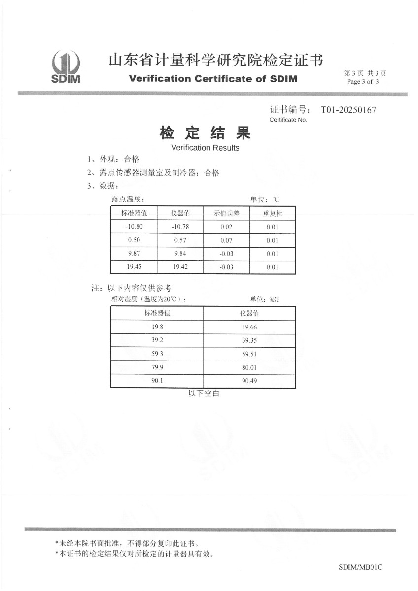 冷鏡式露點儀檢定、校準證書 2025-9-23 本文被閱讀 3037 次