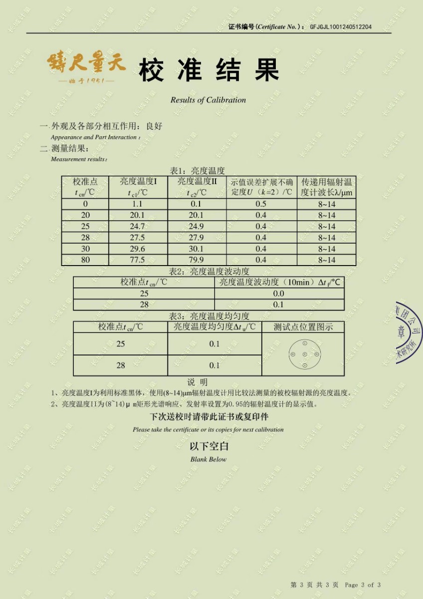 | 上一條:面源黑體爐校準(zhǔn)證書(shū) | 下一條:高精度數(shù)字溫度計(jì)-校準(zhǔn)證書(shū) |